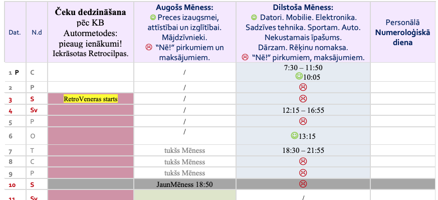 Regulāri ņemot vērā kalendāra padomus, Tu kļūsi daudz zinošāks jautājumos, kā pareizi un veiksmīgi pārdot, iepirkties un kā ietaupīt.