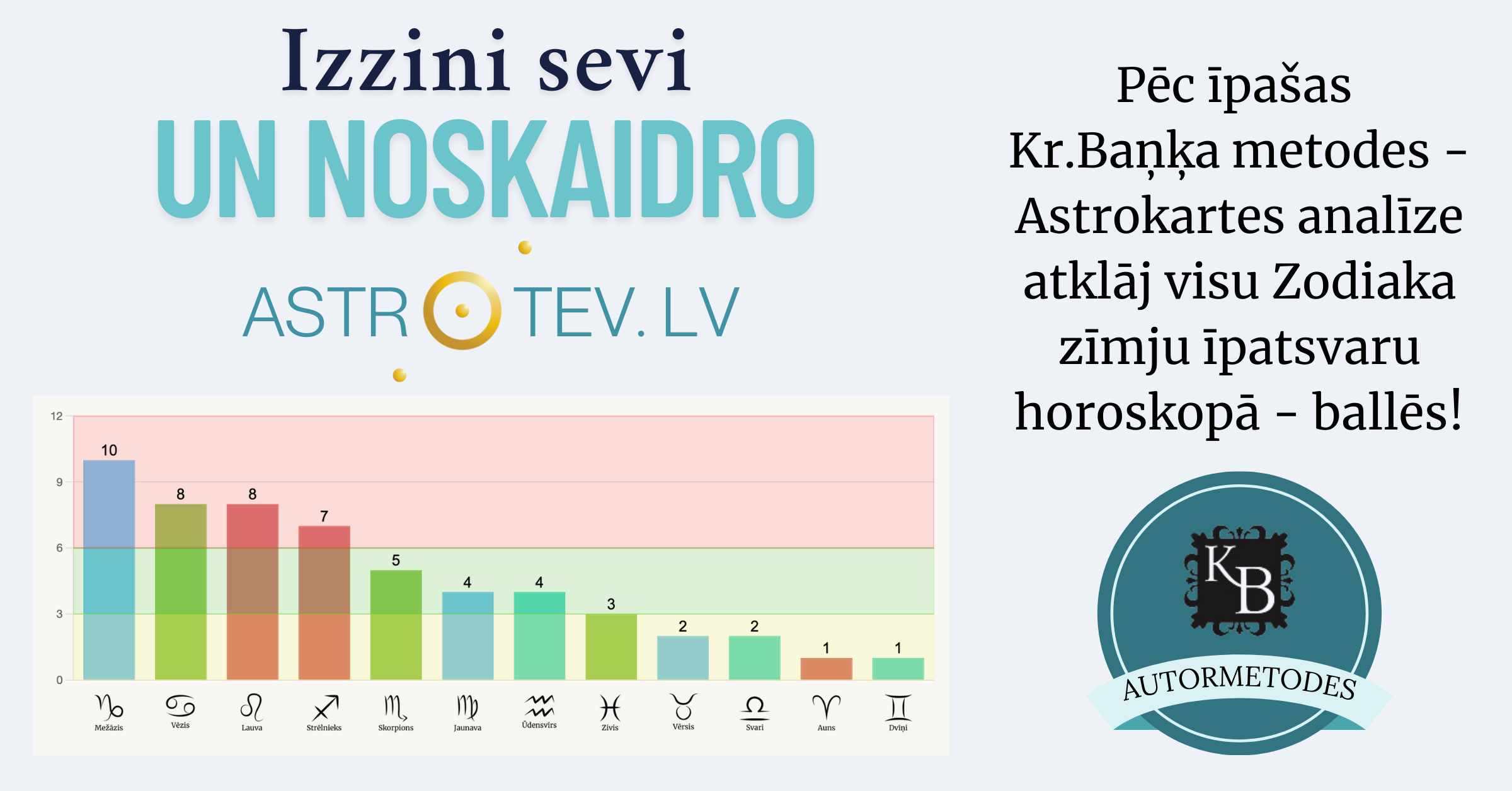Astrokartes analīze atspoguļos un parādīs kādas ir Tavas vadošās planētas un ko tas nozīmē, kāda ir svarīgākā Zodiaka zīme un kā pārējās Zodiaka zīmes ballēs atspoguļojas Tavā astrokartes kopsummā, uzzināsi planētu ātrumu un spēku dzimšanas brīdī un daudz ko citu.