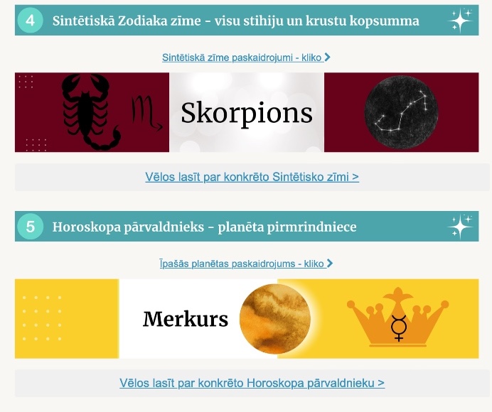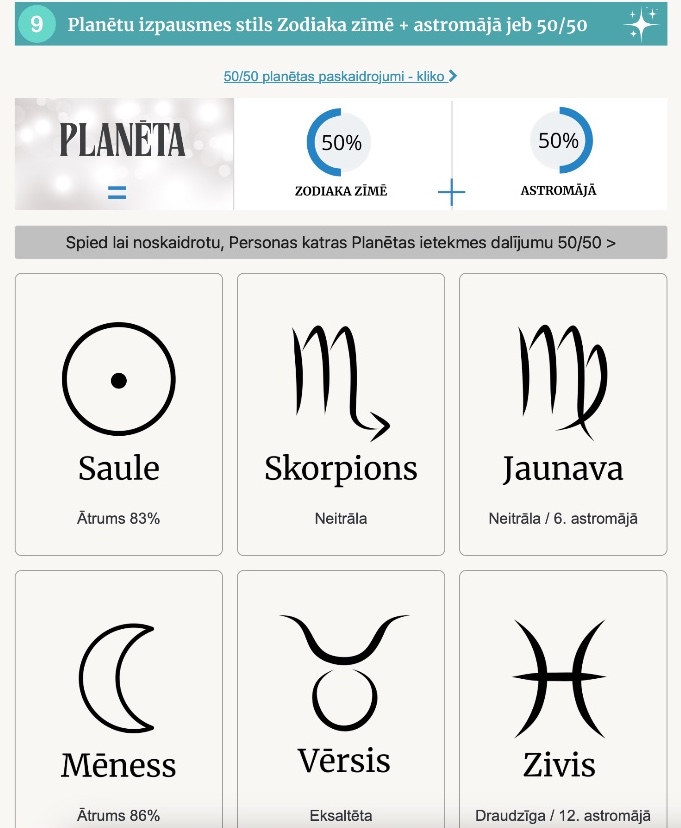 Astrozinīšu - papildus Bonuss. Arvien vairāk cilvēku ir apguvuši astroloģijas pamatus vai izzinājuši astro materiālus. Te būs papildus astroinfomatīvs stimuls tiem, kuri ir zinošāki un informētāki vai apskatot rezultātu - tādi vēlēsies kļūt. Šī informācija ir pieejama arī Astrokarte.lv abonentiem un apgūstama Astroskola.lv